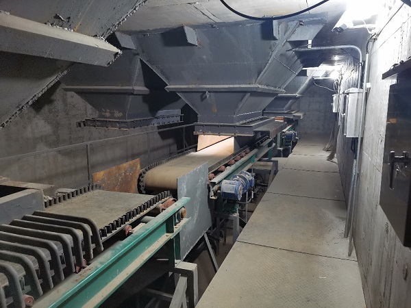 一、跑偏問題的解決: 稱重皮帶機項目設計源于綜采工作面,順槽皮帶在初期安裝好或更換一新皮帶后,綜采結構在皮帶試運行期間皮帶跑偏嚴重,在調試完皮帶架和皮帶滾筒后,皮帶仍然跑偏,導致綜采結構不能正常循環作業。 后經分析原因,綜采工作面的順槽皮帶使用型號為PVG1800S×1400阻燃輸送帶,皮帶厚度18mm,由于皮帶厚度大,新皮帶內部自身應力相應較大,在運行初期,皮帶在張緊運行時皮帶會產生大的抗拉力,導致皮帶受力不均,新皮帶在工作一段時間就得用張緊絞車對皮帶進行張緊,這通過運行初期觀察皮帶張力也可看出,皮帶受力不都是導致皮帶跑偏的主要因素。 稱重皮帶機上的此拉伸皮帶裝置的設計目的主要就是解決廠家生產的新皮帶在進行下井安裝之前,用該裝置將皮帶內部應力減小到越小,簡單地說便是多拉伸,多運行,使新皮帶周全釋放應力解決皮帶安裝初期跑偏問題。 二、裝置組成: 該拉伸裝置主要有絞車、游動小車(帶滾筒組)、中間支撐架、機頭固定驅動滾筒架(1個驅動滾筒、1個導向滾筒)、卷帶裝置、控制開關等組成。游動小車和機頭固定驅動滾筒架安裝有防跑遍托輥組,防止皮帶跑偏劃傷皮帶。整套裝置用地錨直接固定在底板上。 三、特點: 1、稱重皮帶機設計結構簡單。比較于1.4m順槽皮帶而言,內部結構簡單,1部絞車、1部游動小車、1組滾筒、1部卷帶裝置; 2、占用空間小。1.4m順槽皮帶安裝至少需要100m的安裝空間,該部皮帶拉伸裝置只40m; 3、安裝成本低; 4、運行平穩。拉伸裝置采用電滾筒驅動,運行速度較慢,速度約為1.5m/s,運行平穩,振動小; 5、舊物利用率高。絞車、游動小車、滾筒、卷帶裝置、托輥均應用的是1.4m皮帶淘汰下的設備; 6、降低稱重皮帶機皮帶的抗拉力。采用運行—拉緊—運行的模式,使皮帶的抗拉力得到降低,保障了井下安裝的質量。
